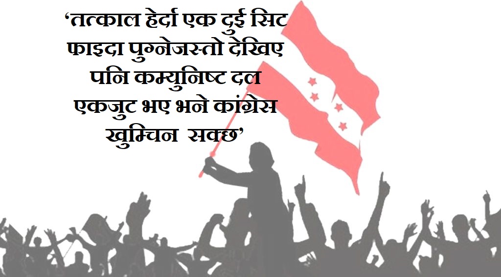 योसँगै पछिल्लो समय नेपाली कांग्रेसले चुनाव एक्लै लड्छ कि चुनावी मोर्चा बनाएर लड्छ भन्ने बहस चल्न थालेका छन् । यस्तोमा सत्ता गठबन्धन चुनावसम्मै जाँदा कांग्रेसलाई घाटा हुने राजनीतिक विश्लेषक पुरन्जन आचार्य बताउँछन् । तत्काललाई हेर्दा एक दुई सिट फाइदा पुग्नेजस्तो देखिए पनि कम्युनिष्ट दल एकजुट भए भने कांग्रेस खुम्चिन सक्ने उनको बुझाई छ । केन्द्रमा कांग्रेस चुनावमा एक्लै लड्नु राम्रो हुने उनले बताए ।