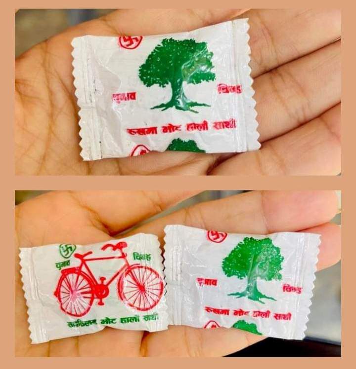 रुपन्देही – निर्वाचनकाे प्रचारप्रसारमा दलहरूले फरक ढंगले मतदातालाई आकर्षित गर्ने प्रयास गरेका छन् । रुपन्देही ३ मा चकलेटमा चुनाव चिह्न राखेर प्रचार प्रसार भइरहेको छ । कांग्रेस र लाेसपाका उम्मेदवारले प्रचारप्रसारका क्रममा चकलेटमा दलकाे चुनाव चिह्न छापेर बाँडेका हुन् ।