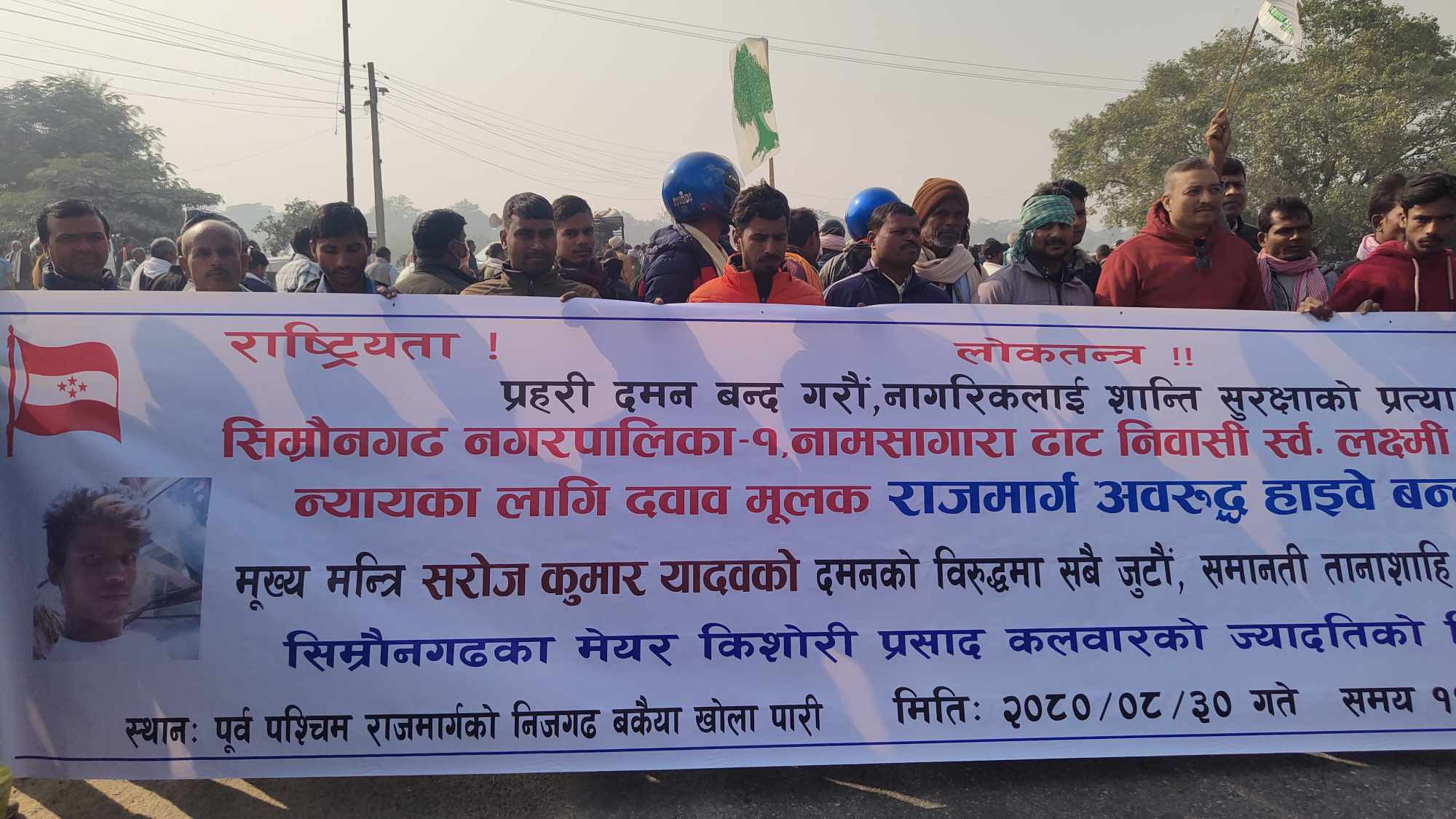 घटनामा सिम्रौनगढ नगरपालिका–१ का लक्ष्मी मुखिया बिनको मृत्यु भएको विरोधमा नेपाली कांग्रेसको क्षेत्र नम्बर १ ले शनिबार पूर्वपश्चिम राजमार्गमा पर्ने निजगढमा चक्काजाम गरेर प्रदर्शन गरेको छ