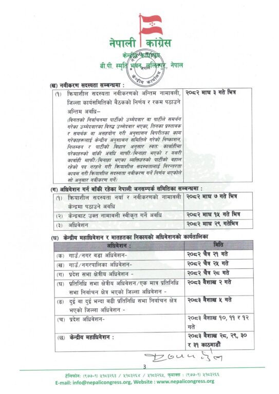 निर्णयमा भनिएको छ, ‘नियमित १५औँ महाधिवेशनको कार्यतालिका बमोजिम आवश्यक प्रक्रिया अघि बढिसकेको सन्दर्भमा विधान बमोजिम समयमै नियमित १५औँ महाधिवेशन वा सोही अवधिमा विशेष महाधिवेशन गर्न भनी माग गरिएको विशेष महाधिवेशनको औचित्य २०८२ मंसिर १५ गतेदेखि नै स्वतः समाप्त भएको व्यहोरा स्पष्ट गरिन्छ।’