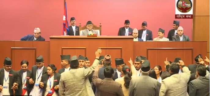आजको बैठक सुरु हुनासाथ प्रमुख प्रतिपक्ष नेपाली कांग्रेसका सांसदहरु यथास्थानमा उठेर प्रक्रिया अवरुद्ध गरेका थिए। त्यसलगत्तै बोल्दै कांग्रेस सांसद सुरेन्द्रराज पाण्डेयले सरकारका कदमप्रति आपत्ति जनाए।