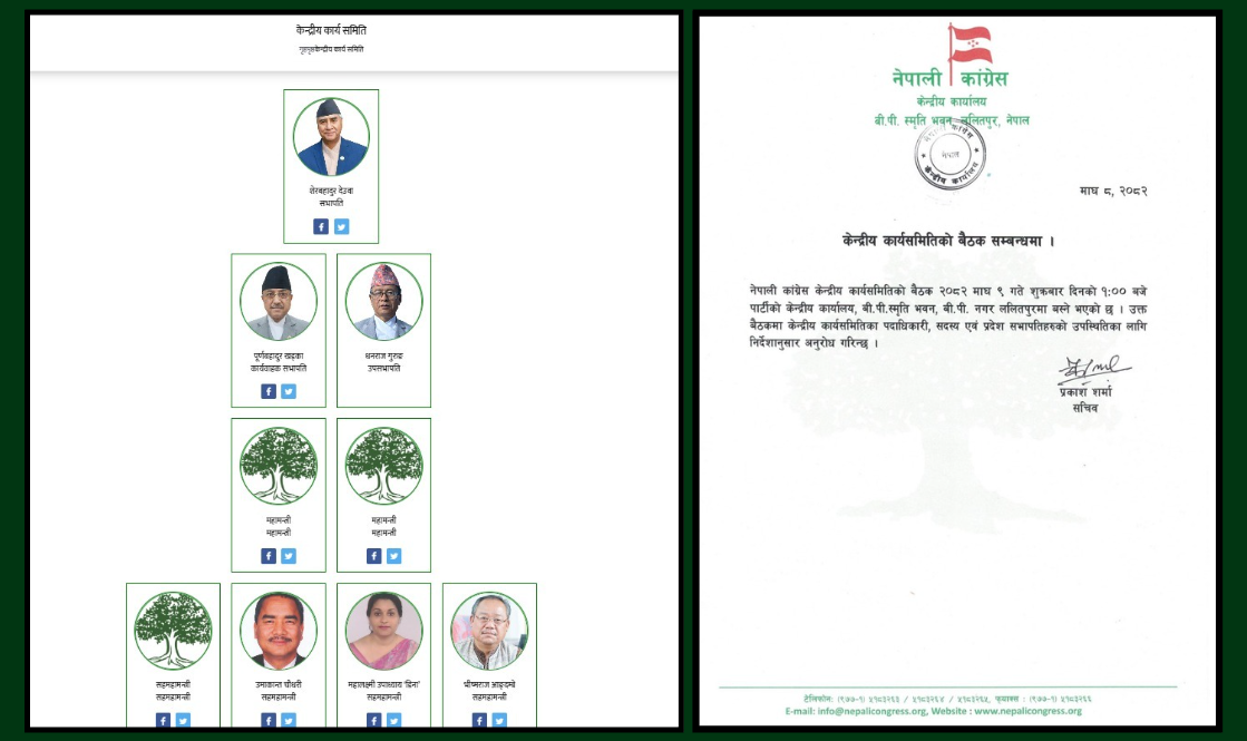 शुक्रबार बस्ने केन्द्रीय कार्यसमितिको बैठक सम्बन्धी आधिकारिक सूचना कांग्रेसकै फेसबूक पेजबाट सार्वजनिक भएपछि सामाजिक सञ्जालको नियन्त्रण समेत नेतृत्व परिवर्तनसँगै सरेको संकेत देखिएको छ ।