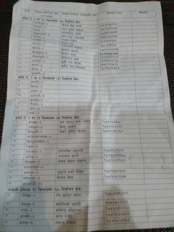 कांग्रेसले अधिकांश ठाउँमा कानुन व्यवसायीहरूलाई निर्वाचन अधिकृत बनाएको छ भने केही ठाउँमा प्राध्यापक र नेपाल शिक्षक संघका प्रतिनिधिलाई पनि जिम्मेवारी दिएको छ ।