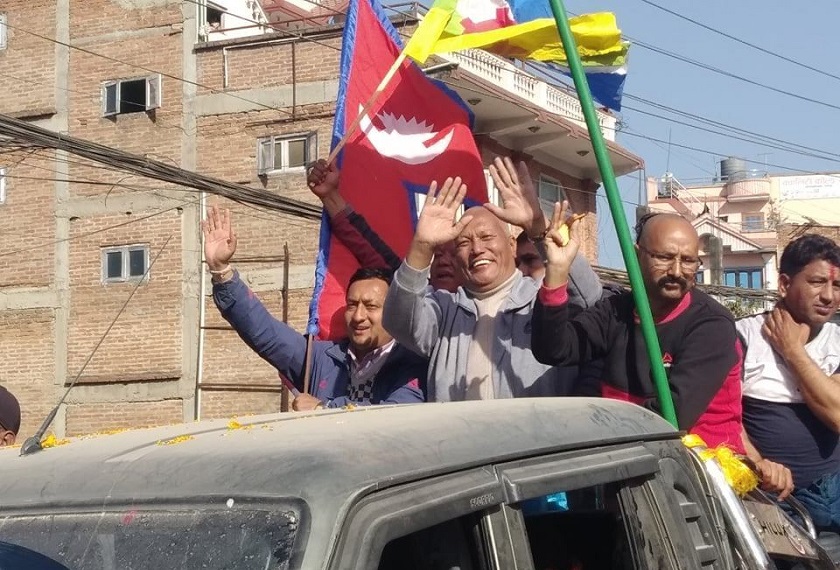 भक्तपुर – भक्तपुर क्षेत्र नं १ (क) मा प्रदेशसभा सदस्यको पदमा विजयी भएपछि नेपाली काँग्रेसले आइतबार विजय र्याली निकालेको छ । उपनिर्वाचनमा काँग्रेसका उम्मेदवार कृष्णलाल भँडेल विजयी भएका हुन् । काँग्रेसका जिल्ला सभापति दुर्लभ थापाको नेतृत्वमा काँग्रेस र राप्रपा (संयुक्त) ले विजय र्याली निकालेको हो ।
