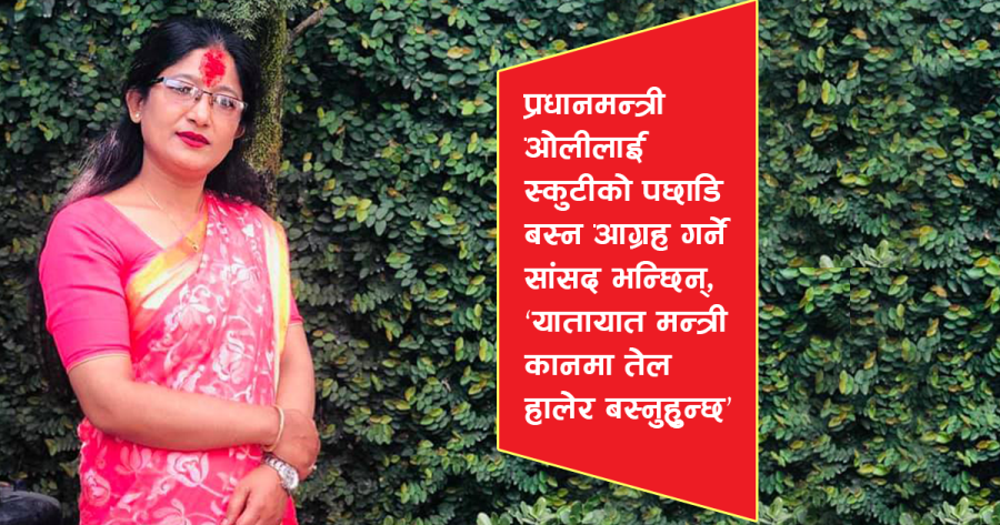 काठमाडौं – नेपाली कांग्रेसकी समानुपातिक सांसद रंगमती शाही प्रधानमन्त्री केपी शर्मा ओलीलाई ‘मेरो स्कुटीको पछाडि बसेर शहर घुम्न जाउँ’ भनेर चर्चामा आइन् ।