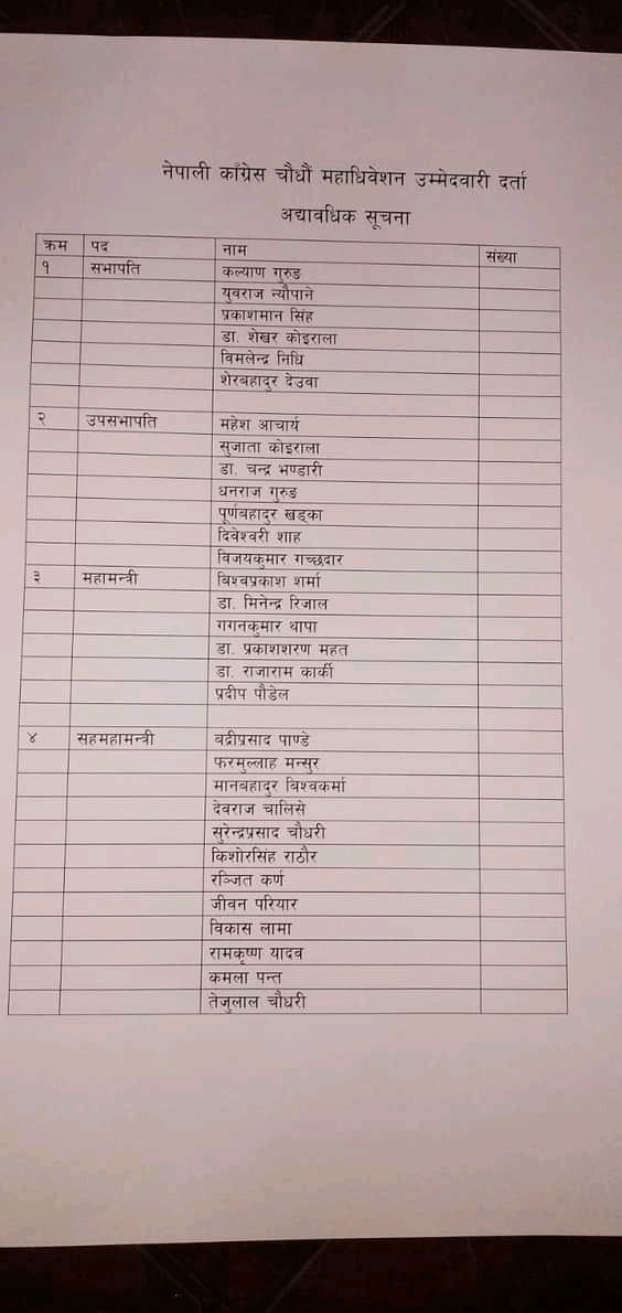 सभापतिदेखि केन्द्रीय सदस्यसम्म क–कसले दिए उम्मेदवारी ?(सूचीसहित)