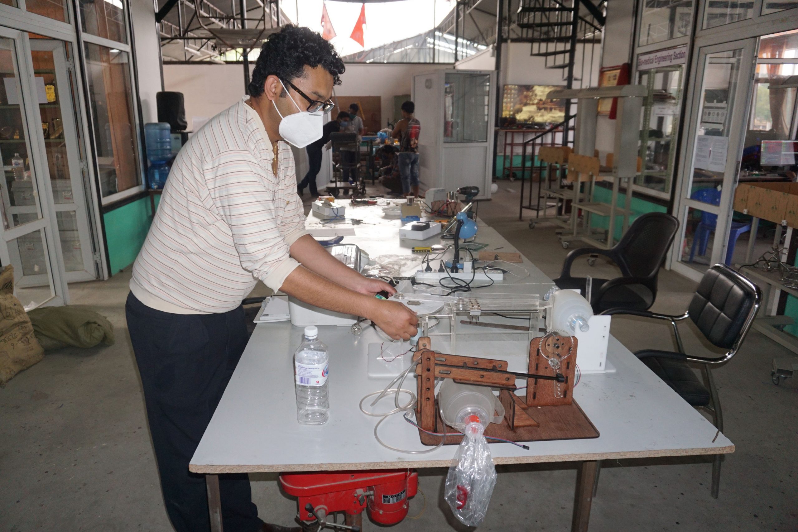 ‘योसँगै गौरवकै नेतृत्वमा पीपीई, ग्लोब्स, मास्क डिसइन्फेक्सन गर्ने यन्त्रको आविष्कार गरिरहेको छ । काम अन्तिम चरणमा रहेको छ । एक प्रकारको अल्ट्रा भाइलेट रे युक्त (यूभी) बनाइँदै छ । त्यो झण्डै ओभन जस्तै हुन्छ । केही दिनमा तयार हुँदैछ’, दासले भने । त्यसभित्र एक प्रकारको बक्सा हुन्छ । त्यहाँ राखेपछि एक पटक प्रयोग गरिएका सामान फेरि प्रयोग गर्न सकिने गरी भाइरसरहित बनाइन्छ । व्यक्तिगत स्वास्थ्य एवं सुरक्षात्मक सामग्रीको अभाव भइरहेको बेलामा निर्मलीकरण गरेर पनि प्रयोग गर्नसक्ने ओभन जस्तै यूभी बनाउन लागिएको दासले जानकारी दिए ।