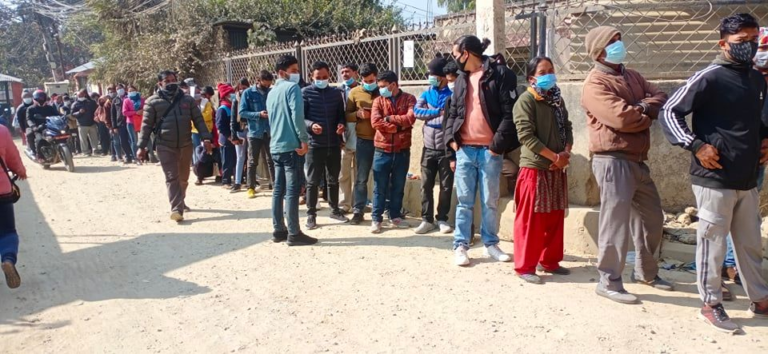 पछिल्लो समय कोरोना संक्रमणदर बढेसँगै खोप केन्द्रमा खोप लगाउनेको भिड पनि उत्तिकै बढेको छ । खोप केन्द्रहरूमा खोप लगाउनेको व्यापक भिड हुँदा त्यहीँबाट कोरोना महामारी फैलिन सक्ने उच्च जोखिम रहेको छ ।
