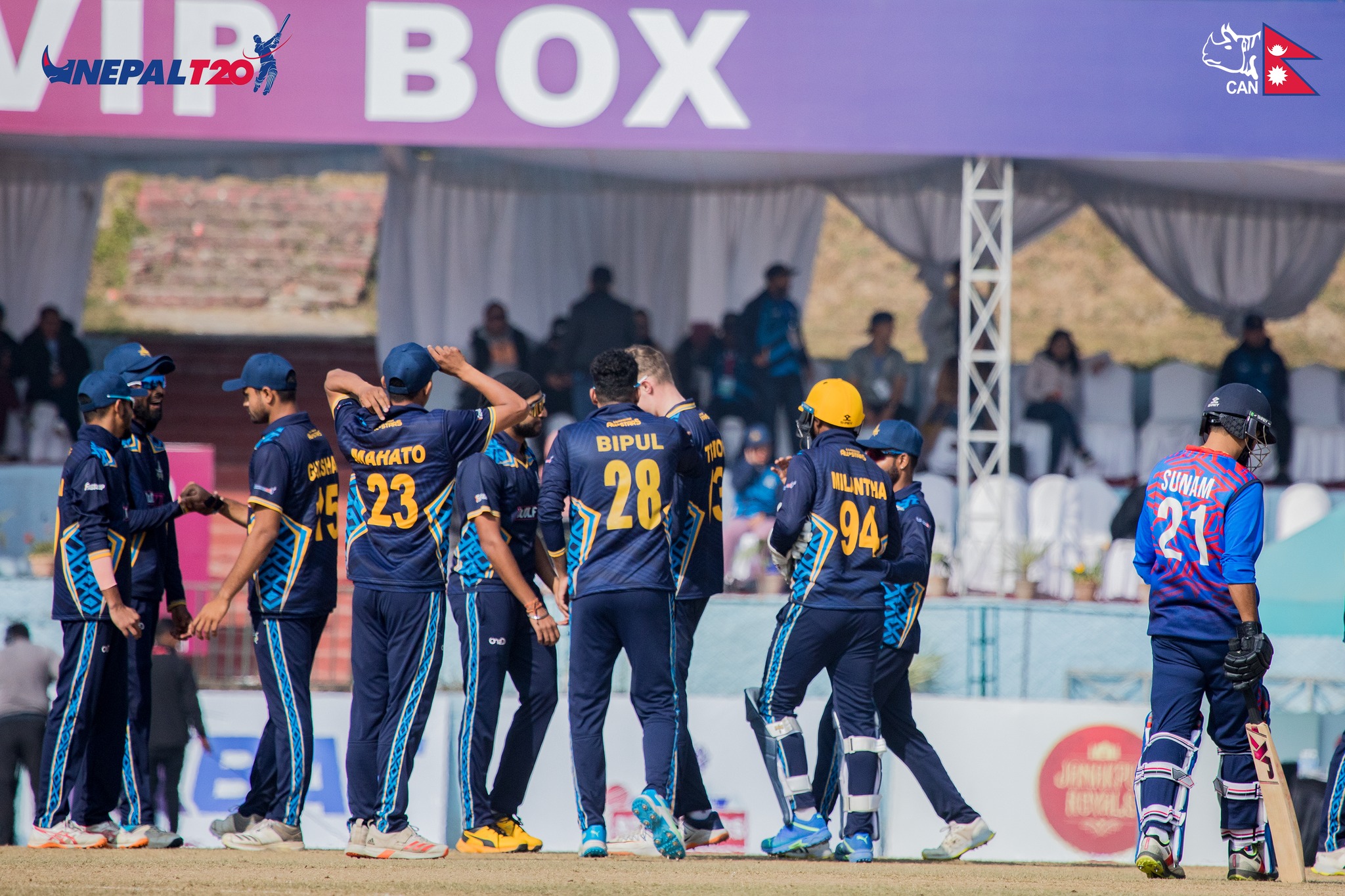 काठमाण्डुलाई पराजित गर्ने क्रममा लुम्बिनीका कुशल भुर्तेल, इशान पाण्डे र ह्यारी टेक्टरले समान दुई दुई विकेट लिए । काठमाडौंका लागि बसिर अहमदले २२, कमलसिंह ऐरीले १६ तथा कप्तान ज्ञानेन्द्र मल्ल र लोकेश बमले समान १५/१५ रन जोडेका थिए ।