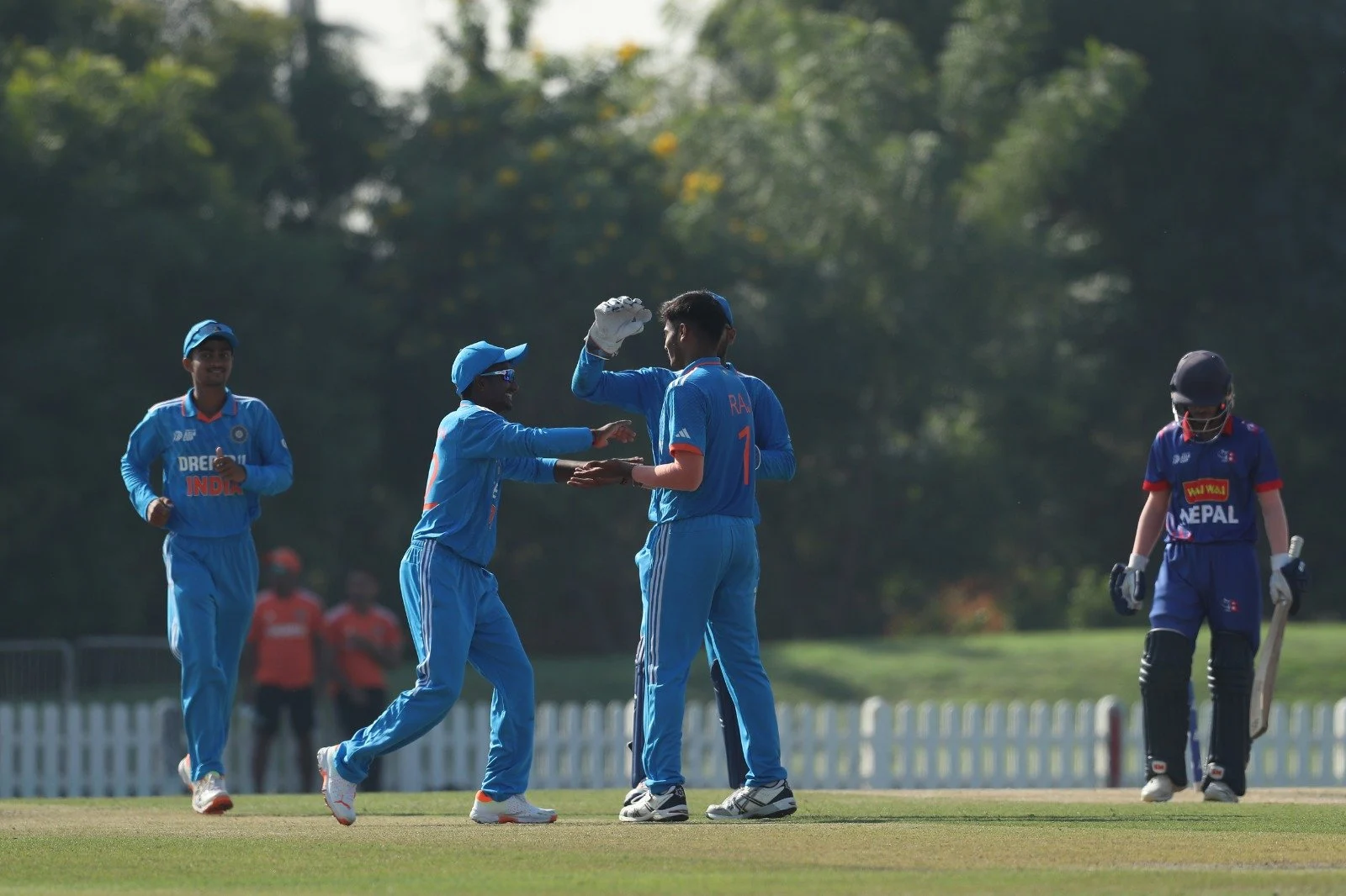 भारतका लागि ओपनर ब्याट्सम्यान आदर्श सिंहले अविजित १३ र आर्सिन कुलकणर्लीले अविजित ४३ रनको योगदान गरे । यसभन्दा अघि नेपालले २२.१ ओभरमा अलआउट हुनुअघि ५२ रनमात्र बनाउन सक्यो ।