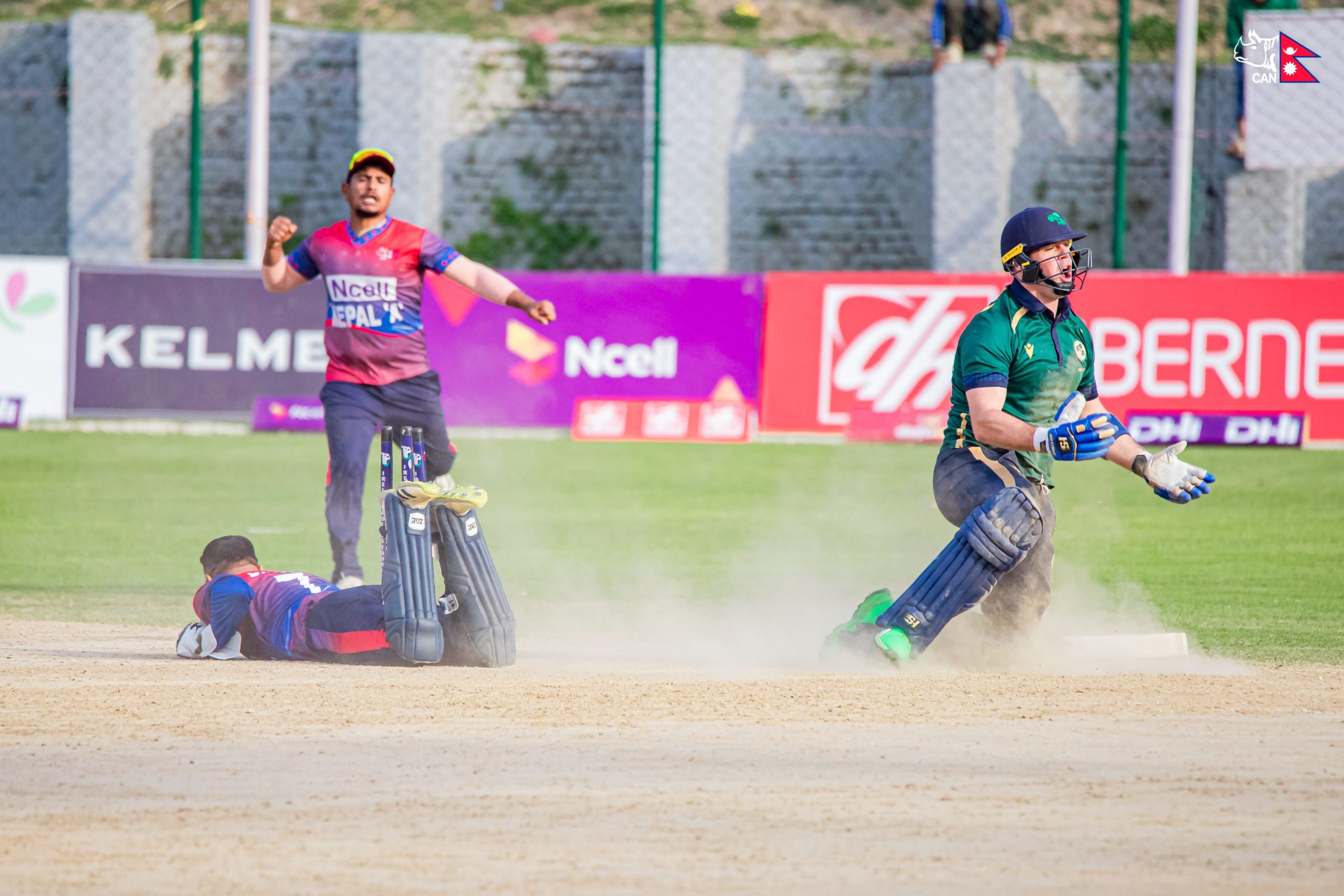 कीर्तिपुरस्थित त्रिवि क्रिकेट मैदानमा सोमबार भएको सिरिजको तेस्रो तथा अन्तिम खेलमा नेपालले आयरल्यान्डलाई ३ रनले हराएको छ ।