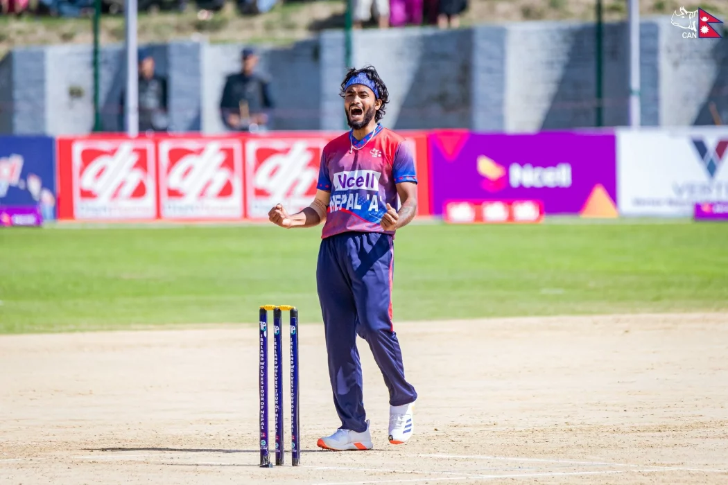 कमलले ३९ औं ओभरको पहिलो बलमा लियाम म्याकार्थीलाई डीप मिडविकेटमा साहबबाट २ रनमा क्याच, दोस्रो बलमा म्याथ्यु हम्फ्रेज र तेस्रो बलमा बेन ह्वाइटलाई बोल्ड गर्दै ह्याट्रिक लिए ।