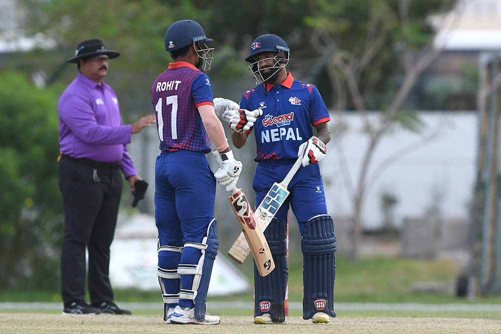 नेपालका लागि दिपेन्द्र सिंह ऐरीले आक्रामक ब्याटिङ गर्दै अविजित ६४ रन बनाएका थिए । दिपेन्द्रले १९ बलमा अर्धशतक पुरा गरेका थिए । दिपेन्द्रले अन्तिम ओभरमा ६ बलमा ६ छक्का प्रहार गरेका थिए । त्यस्तै असिफ सेखले ५२ रन बनाए भने कुशल मल्लले ३५, कप्तान रोहित पौडेलले १८, कुशल भुर्तेलले १२ सन्दीप जोराले ७ र गुलशन झाले ५ रन बनाएका थिए ।