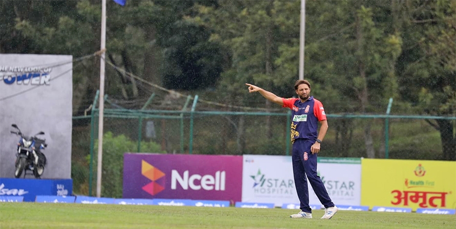 कीर्तिपुरको त्रिवि क्रिकेट मैदानमा जारी एभरेष्ट प्रिमियर लिग (ईपीएल)मा अफ्रिदी सबभन्दा ठूलो नाम हो । पाकिस्तानका अलराउन्डर अफ्रिदी छैटौं ओभरमा बलिङ गर्न आएका थिए ।