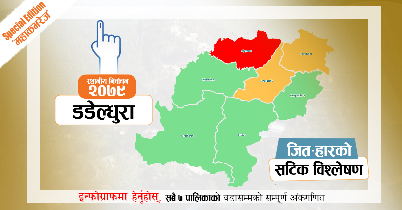 काठमाण्डु – डडेल्धुरा प्रधानमन्त्री एवं कांग्रेस सुप्रिमो शेरबहादुर देउवाको गृहजिल्ला हो । सुदूरपश्चिमको पहाडी जिल्ला डडेल्धुरामा दुई नगरपालिकासहित सातवटा स्थानीय तह छन् । प्रधानमन्त्रीको गृहजिल्ला भएकाले यहाँको चुनावलाई पनि चासोका साथ हेरिएको छ । डडेल्धुरामा कांग्रेस, एमाले र माओवादीबीच त्रिपक्षीय प्रतिस्पर्धा देखिन्छ ।