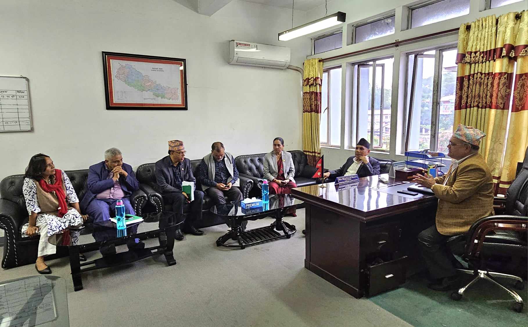 काठमाण्डु – राष्ट्रियसभा अध्यक्ष नारायण प्रसाद दाहालले राष्ट्रिय सभाअन्तर्गत संसदीय समितिहरूका सभापतिहरूलाई भेटेर काम, कारबाही र व्यवस्थापकीय अवस्थाबारे जानकारी लिएका छन् ।