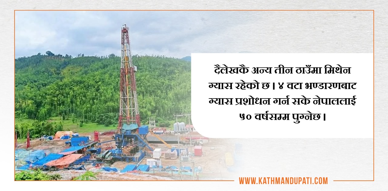 दैलेखकै अन्य तीन स्थानमा पनि मिथेन ग्यासको भएको पनि प्रतिवेदनमा उल्लेख छ । ४ वटा भण्डारणबाट ग्यास प्रशोधन गर्न सकेको खण्डमा नेपाललाई ५० वर्षसम्म पुग्ने प्रारम्भिक प्रतिवेदनले देखाएको छ ।