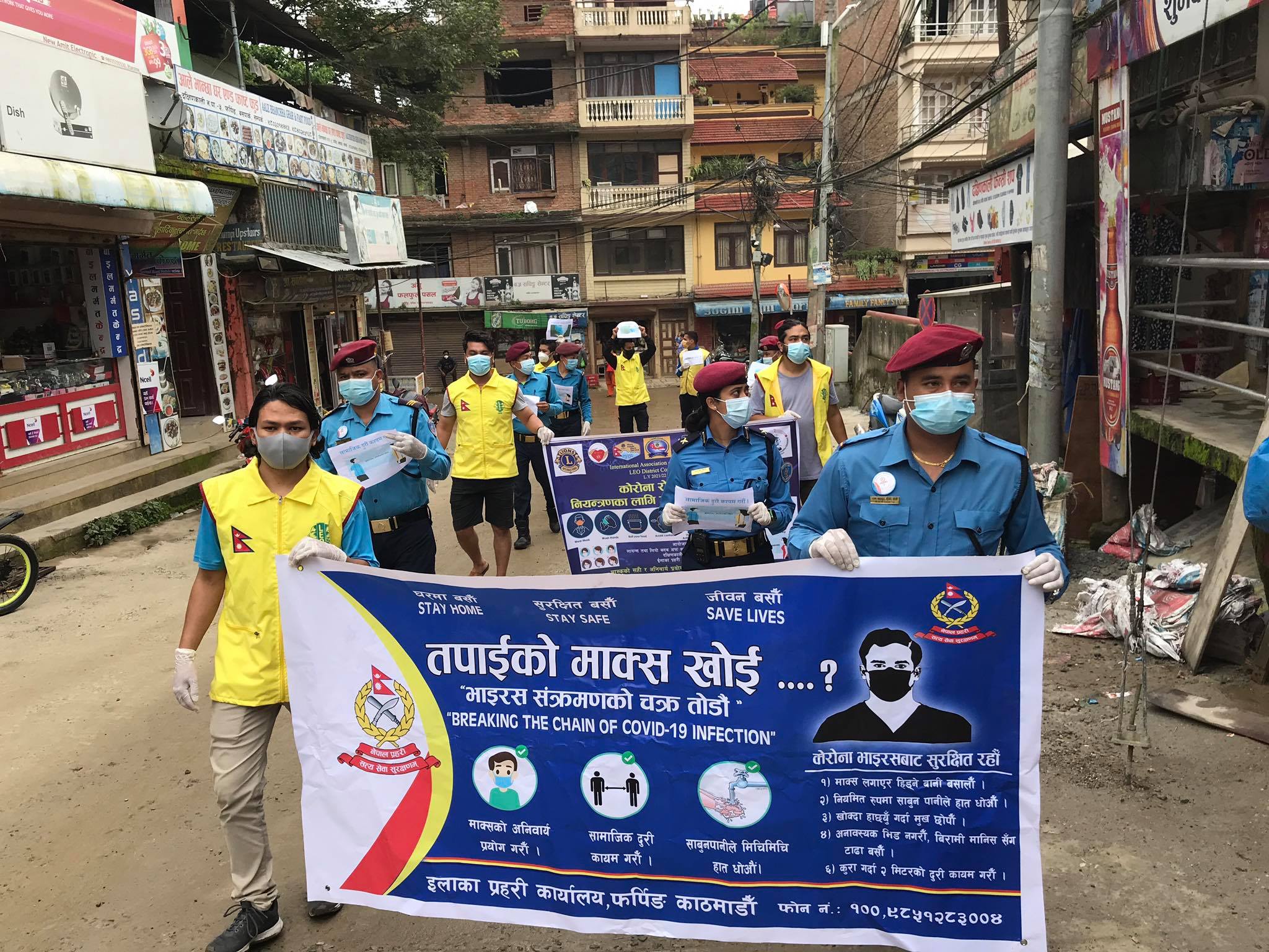 लायन्स दक्षिणकालीका अध्यक्ष दिनेश आचार्यले कोभिड–१९ महामारी नयाँ चरणमा प्रवेश गर्दै गरेको सन्दर्भमा सर्वसाधारणलाई जनस्वास्थ्यको मापदण्डहरू पालना गर्न सचेतना स्वरूप प्रहरी कार्यालयसँग मिलेर अभियान चलाइएको जानकारी दिए ।