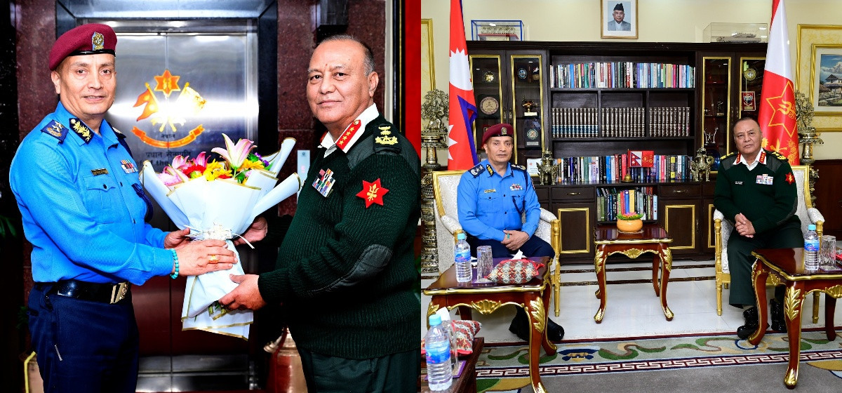 काठमाण्डु – प्रहरी महानिरीक्षक दानबहादुर कार्कीले प्रधान सेनापति अशोकराज सिग्देलसँग भेट गरेका छन्।