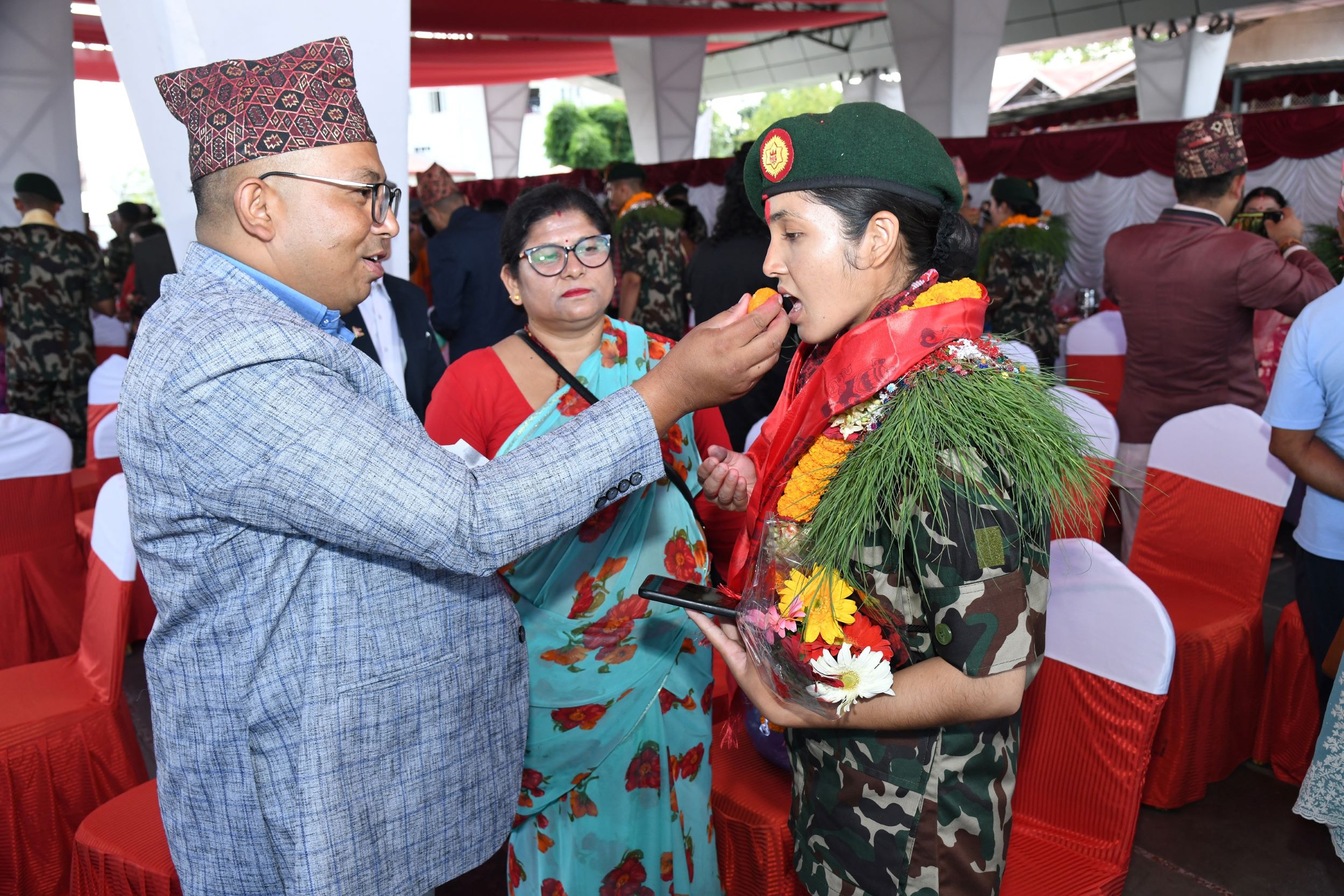 नेपाली सेनाका रथीवृन्द, अधिकृतहरूका साथै नव नियुक्त अधिकृतहरूका परिवारको उपस्थिति रहेको कार्यक्रममा प्रधानसेनापतिले नव नियुक्त अधिकृतहरूलाई बधाई दिँदै सैनिक जीवनमा सफलताको लागि शुभकामना व्यक्त गरे ।