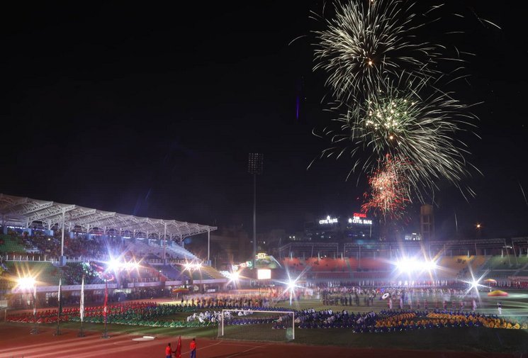 काठमाडौं – मंसिर १५ देखि २४ गतेसम्म हुने १३ औं दक्षिण एसियाली क्षेत्रीय खेलकुद प्रतियोगिता (साग)सुरू हुन दुई दिन बाँकी रहँदा दशरथ रंगशालामा उद्घाटन कार्यक्रमको रिहर्सल गरिएको छ।सागलाई भव्य बनाउने उद्देश्यले एक समारोहकाबीच सेना, प्रहरी तथा विद्यार्थीले उद्घाटनको रिहर्सल गरेको हो।