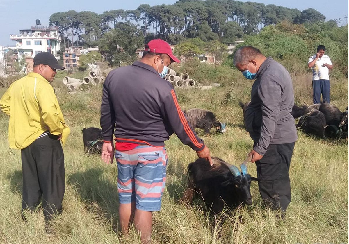 काठमाण्डु – काठमाण्डु महानगरपालिकाले उपभोक्तालाई सिङमा हरियो रङ भएका खसी, बोका, भेंडा, च्याङ्ग्रा जस्ता चौपाया खरीद गर्न आग्रह गरेको छ । बडादशैंका लागि काठमाण्डु ल्याइएका निरोग खसी—बोका तथा भेंडा—च्याङ्ग्राको सिङमा हरियो र रोगीलाई रातो लगाइने गरेको छ ।