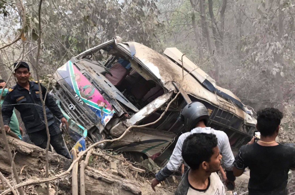 अन्य घाइतेको भने भरतपुर तथा नवलपुरका विभिन्न अस्पतालमा उपचार भइरहेको प्रनाउक गिरीले बताए । शनिबार साँझ नवलपुरको विनयी त्रिवेणी गाउँपालिका–२ दाउन्नेमा बुटवलबाट नारायणगढका लागि छुटेको ना५ख ७००० नम्बरको यात्रुबाहक बस आफैँ अनियन्त्रित भई सडकबाट दुई मिटर तल खसेको थियो । बस दुर्घटनामा परी बसमा सवार सबै घाइते भएका थिए ।