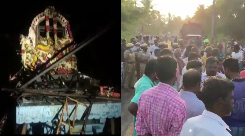 नयाँ दिल्ली – दक्षिण भारतको तमिल नाडुस्थित एक मन्दिरमा भएको धार्मिक जात्राका क्रममा करेन्ट लागेर कम्तीमा ११ जनाको मृत्यु भएको छ । तञ्जावुर जिल्लामा मन्दिरको रथ उच्च भोल्टको नांगो तारलाई छुँदा करेन्ट लागेको प्रहरीले जनाएको छ ।