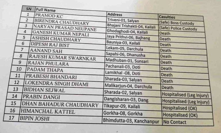 यस्तै पाँचनली–डोटीका राजन फुलारा, लामिखाल-८ डोटीका पदम थापा, सारदा-३ सल्यानका प्रवेश भण्डारी र मालिकार्जुन-४ दार्चुलाका लोकेन्द्र सिंह धामीको पनि मृत्यु भएको छ ।