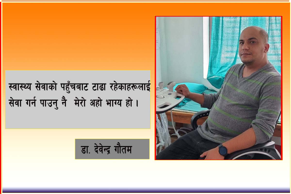 अस्पतालमा फुर्सद निस्कनासाथ उनी निःशुल्क स्वास्थ्य शिविर लिएर गाउँ गाउँमा पुगिरहेका छन् । उनी हुन् काभ्रेको कोसीपारिमा जन्मिएका ३४ वर्षीय डा. देवेन्द्र गौतम । काभ्रेकै पाँचखालमा रहेको गोल्डेन फियुचर ईङ्गलिस स्कुलबाट एसएलसी उत्तीर्ण गरेका गौतमले प्लस टु भने काठमाण्डुको हिमालयन ह्वाइटहाउस इन्टरनेशनल कलेजबाट पुरा गरेका हुन् ।