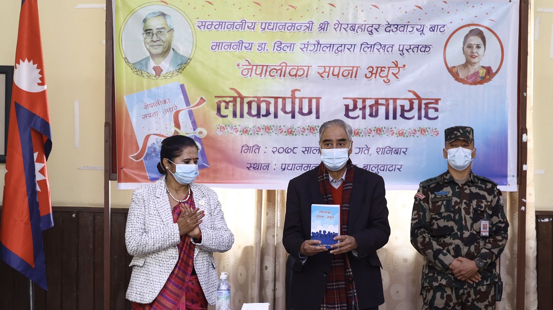 काठमाण्डु – प्रधानमन्त्री शेरबहादुर देउवाले राज्यका रहेक निकाय, तह, तप्का र संरचनामा महिला अधिकारको सुनिश्चितता भएको बताएका छन् । नेपाली कांग्रेसका केन्द्रीय सदस्य डा डिला सङ्ग्रौलाद्वारा लिखित ‘नेपालीका सपना अधुरै’ नामक पुस्तकको आज विमोचन गर्दै उनले महिलालाई आरक्षण अधिकार दिनेमा नेपाल विशेष मुलुक भएको बताएका हुन् ।