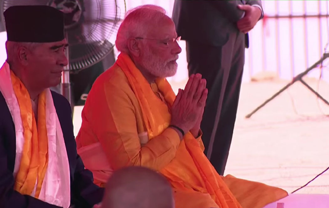 काठमाण्डु – भारतका प्रधानमन्त्री नरेन्द्र मोदी लुम्बिनीमा इन्डिया इन्टरनेशनल सेन्टर फर बुद्धिष्ट कल्चरको शिलान्यास गरिरहँदा हात जोडेर ध्यानमा बसे । आँखा चिम्लिएर मोदी ध्यानमा बस्दा प्रधानमन्त्री तथा नेपाली कांग्रेसका सभापति शेरबहादुर देउवा भने फरक तरिकाले प्रस्तुत भएको भिडियो हाल सामाजिक सञ्जालमा भाइरल भइरहेको छ ।