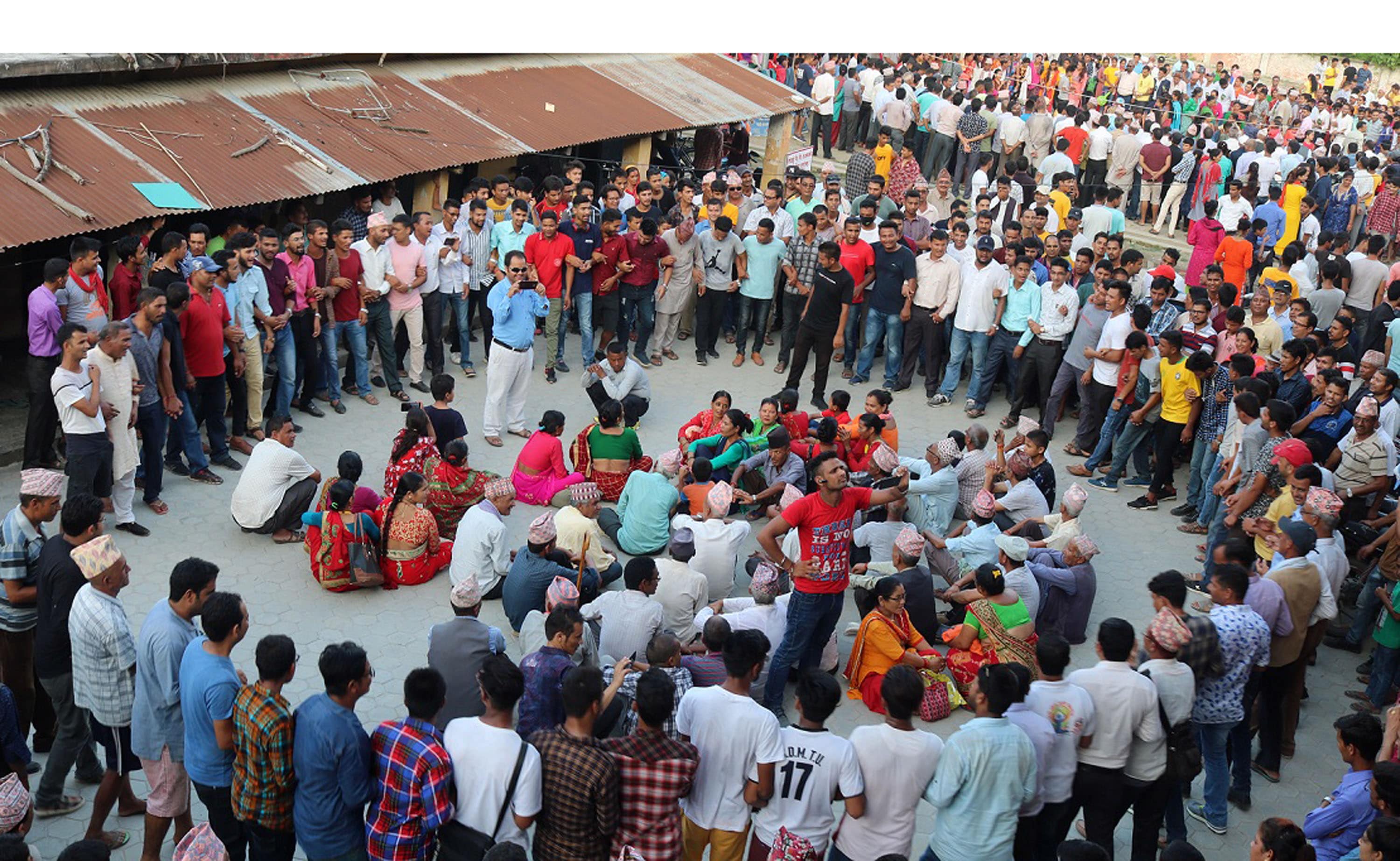 उक्त ब्यङ्गको महिलाको समूहले डेउडाकै भाकामा यसरी जवाफ फर्काइरहेको थियो–