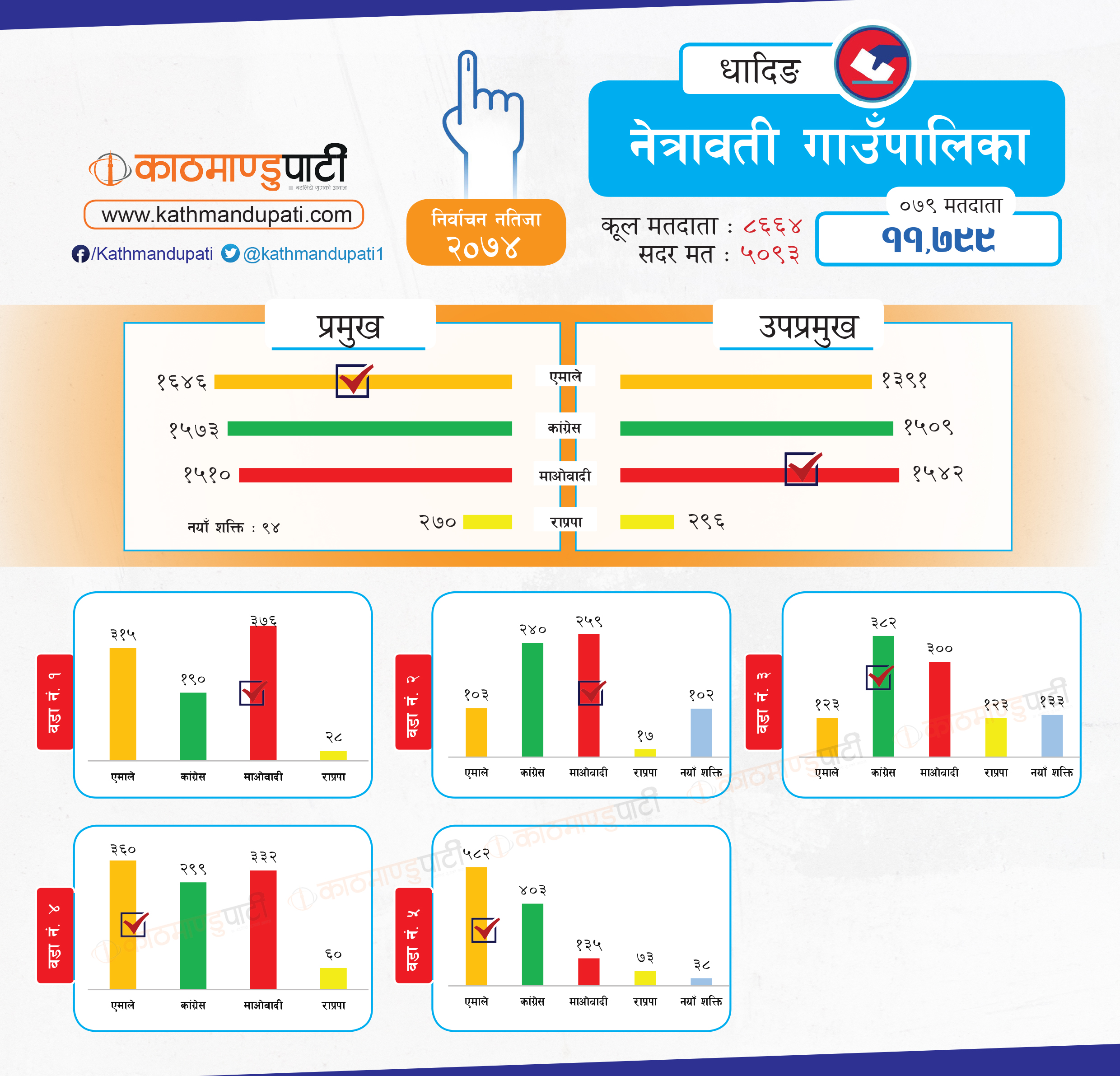 नीलकण्ठ नगरपालिकामा कांग्रेसले पनि पुरानै मेयर भीमप्रसाद ढुंगानालाई दोहो¥याएको छ । कांग्रेसले यसबाहेक गंगाजमुना, नेत्रावती, त्रिपुरासुन्दरी, ज्वालुमुखी, सिद्धलेक, थाक्रे र खनियावास गाउँपालिकामा गठबन्धनका तर्फबाट प्रमुखमा उम्मेदवारी दिएको छ । माओवादीले बेनीघाट–रोराङ, रुबीभ्याली र गजुरीमा प्रमुख पाएको छ ।