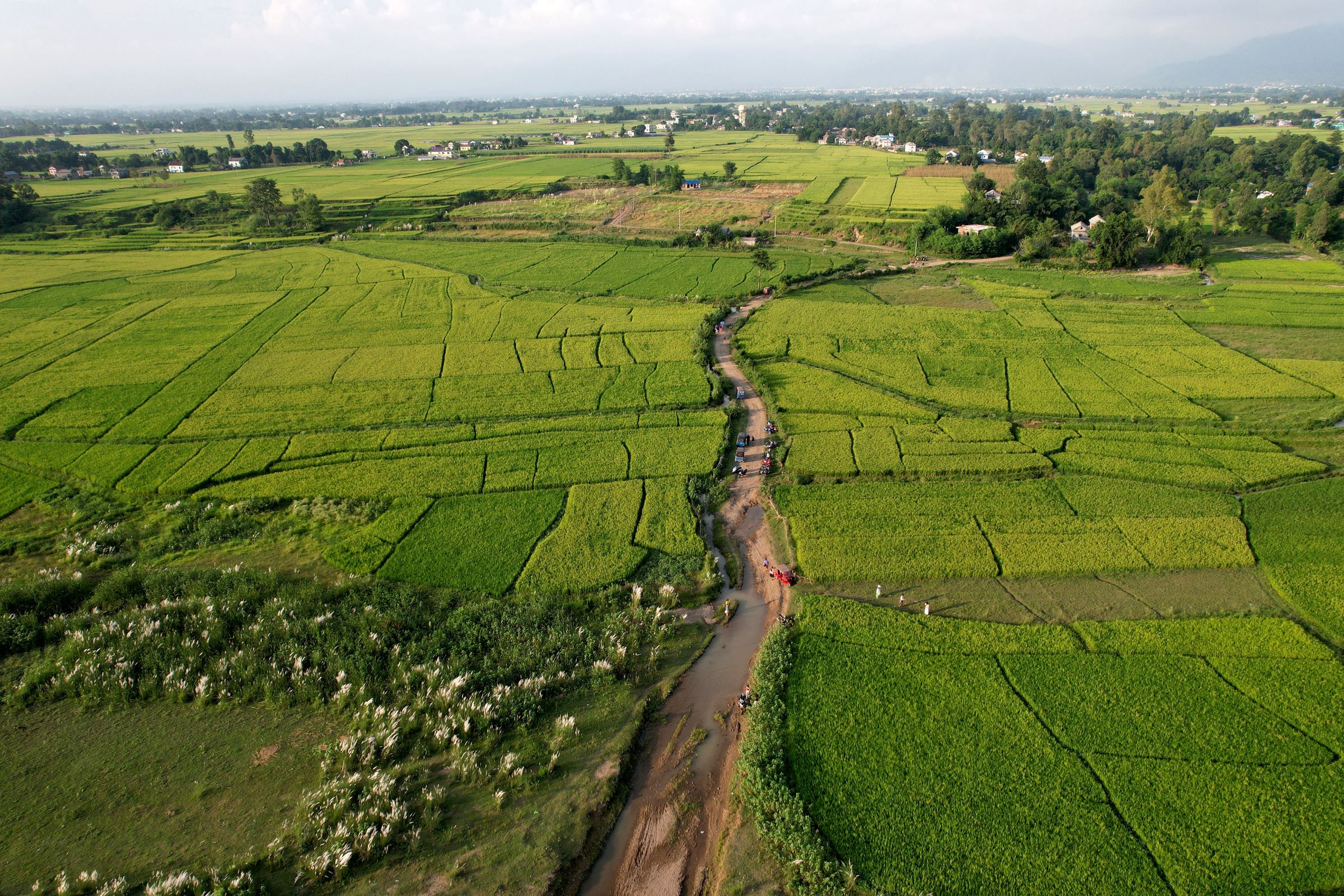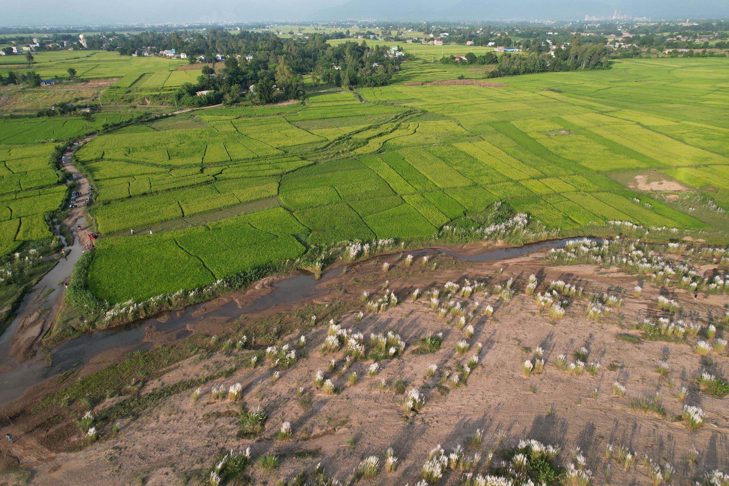 दाङको गुरुवागाउँको धानखेतको हरियाली र आसपासको दृश्य । तस्वीर–रासस