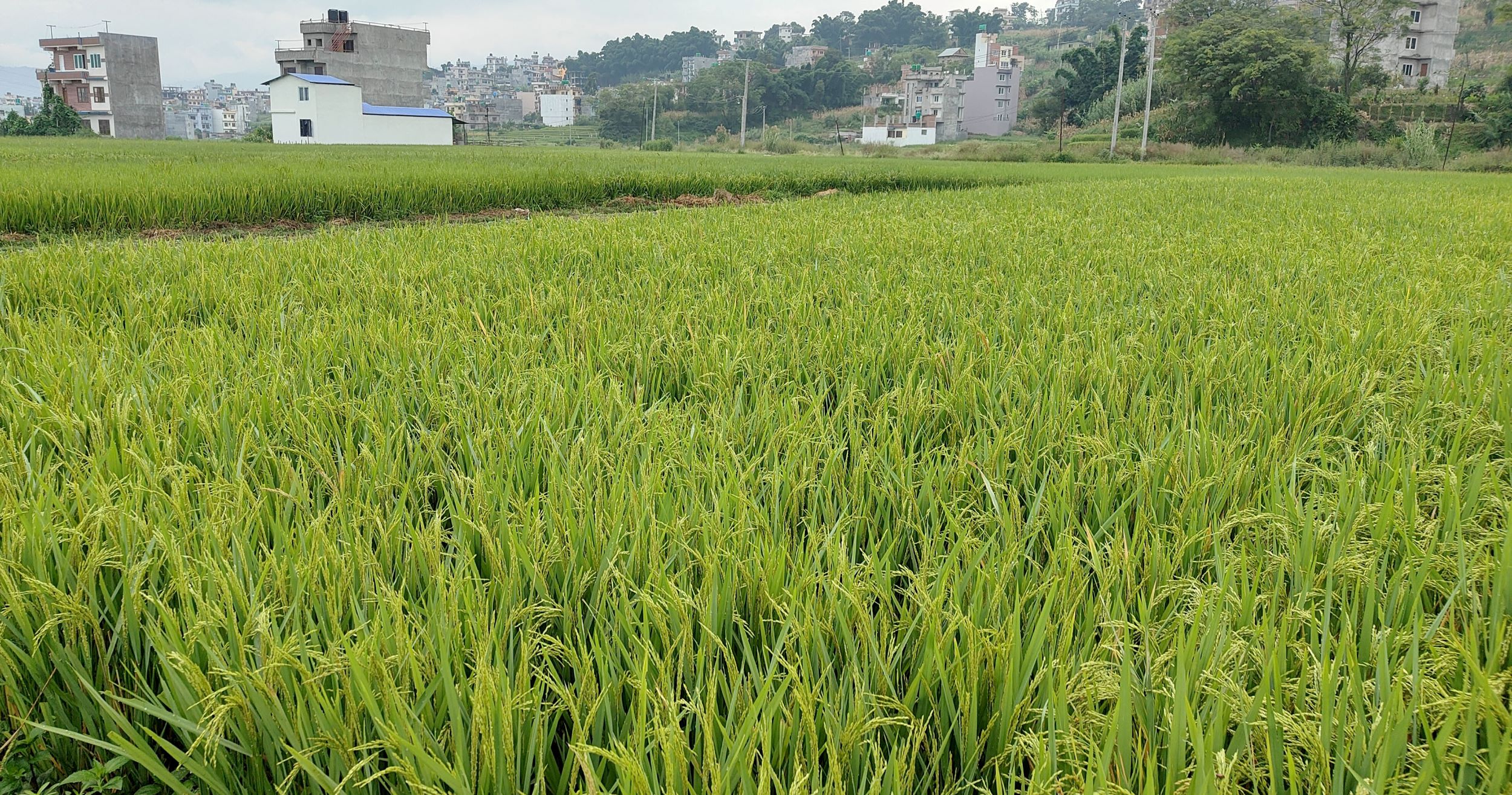भक्तपुरको दधिकोट चखुफाँटमा पाक्न थालेका धानबाली
