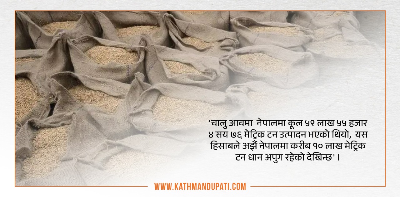 विभागका अनुसार यस अवधिमा सो मूल्य बराबरको ७ लाख ५३ हजार मेट्रिक टन धान, धानको बीउ, चामल र कनिका आयात भएको हो । गत आवको यस अवधिमा नेपालमा करीब २१ अर्ब १३ करोड रुपैयाँ बराबरको ३ लाख ९० हजार मेट्रिक टन धान आयाता भएको थियो ।