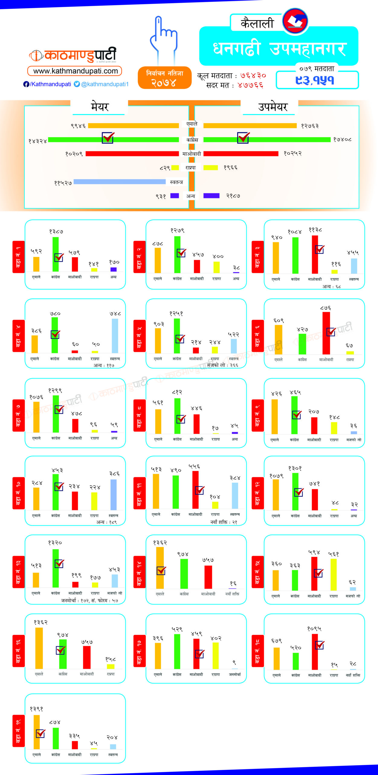काठमाण्डु –  सुदूरपश्चिम प्रदेशको राजधानीसमेत रहेको धनगढी उपमहानगरपालिका कांग्रेसको पकड भएको स्थानीय तह हो । प्रधानमन्त्री शेरबहादुर देउवाको गृह प्रदेशसमेत रहेकाले धनगढीलाई उसले प्रतिष्ठाको विषय बनाउने गरेको छ । गत निर्वाचनमा कांग्रेसले धनगढीमा मेयर,उपमेयरसहित बहुमत वडा जितेको थियो । मेयरमा एमाले शीर्ष तीनमा समेत अटाउन सकेन।