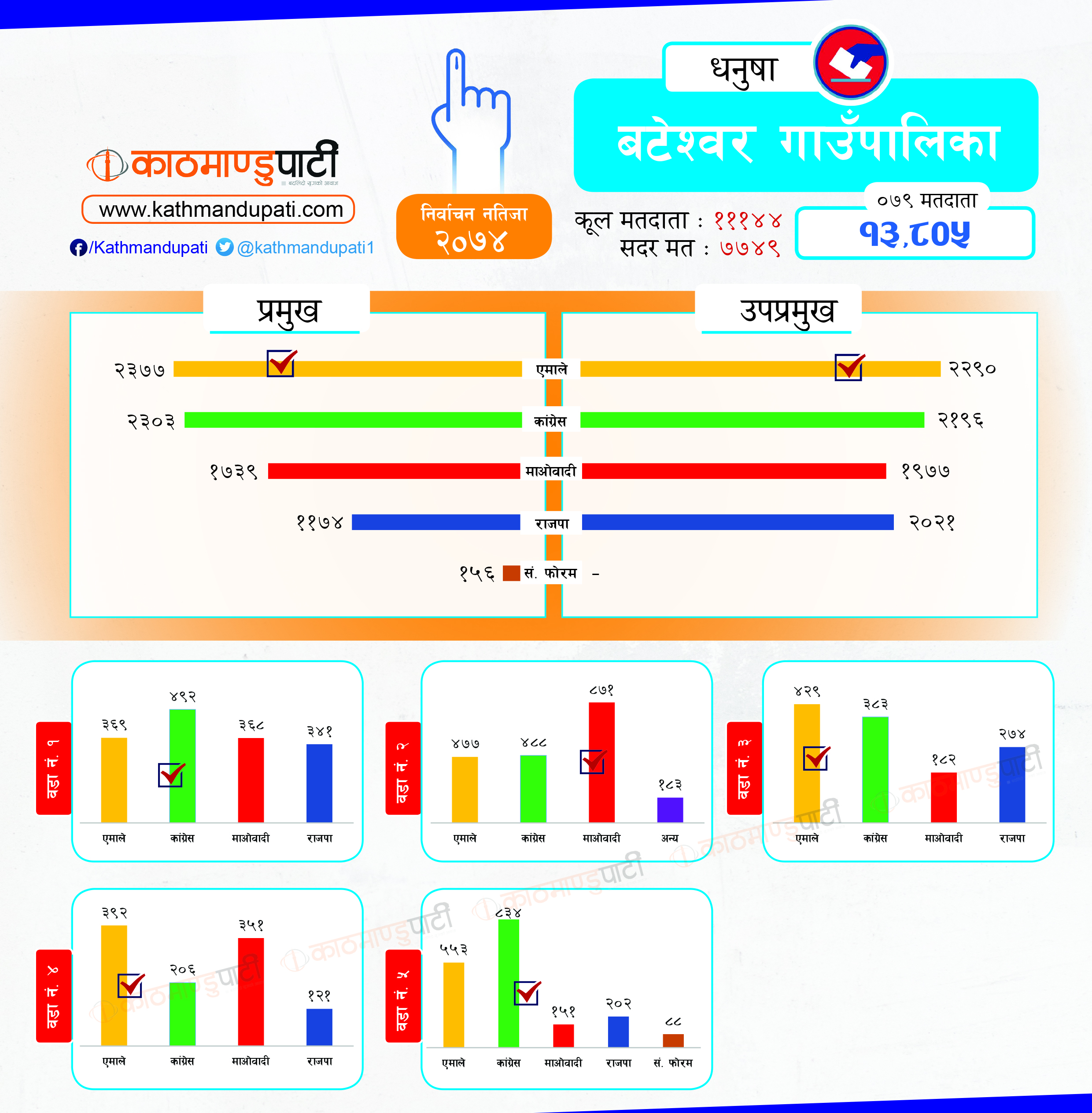 एमालेले झिनो मतान्तरले कांग्रेसलाई हराएको बटेश्वरमा यसपटक यसै भन्न सकिने अवस्था छैन । एमालेले जितेको मिथिला नगरपालिकामा माओवादी र जसपा मिलेका छन् । यहाँ कांग्रेस पनि बलियो छ । मिथिला–बिहारी नगरपालिकामा बहुपक्षीय प्रतिस्पर्धा छ । मुखियापट्टी–मुसहरमिया गाउँपालिकामा एमाले बलियो छ ।