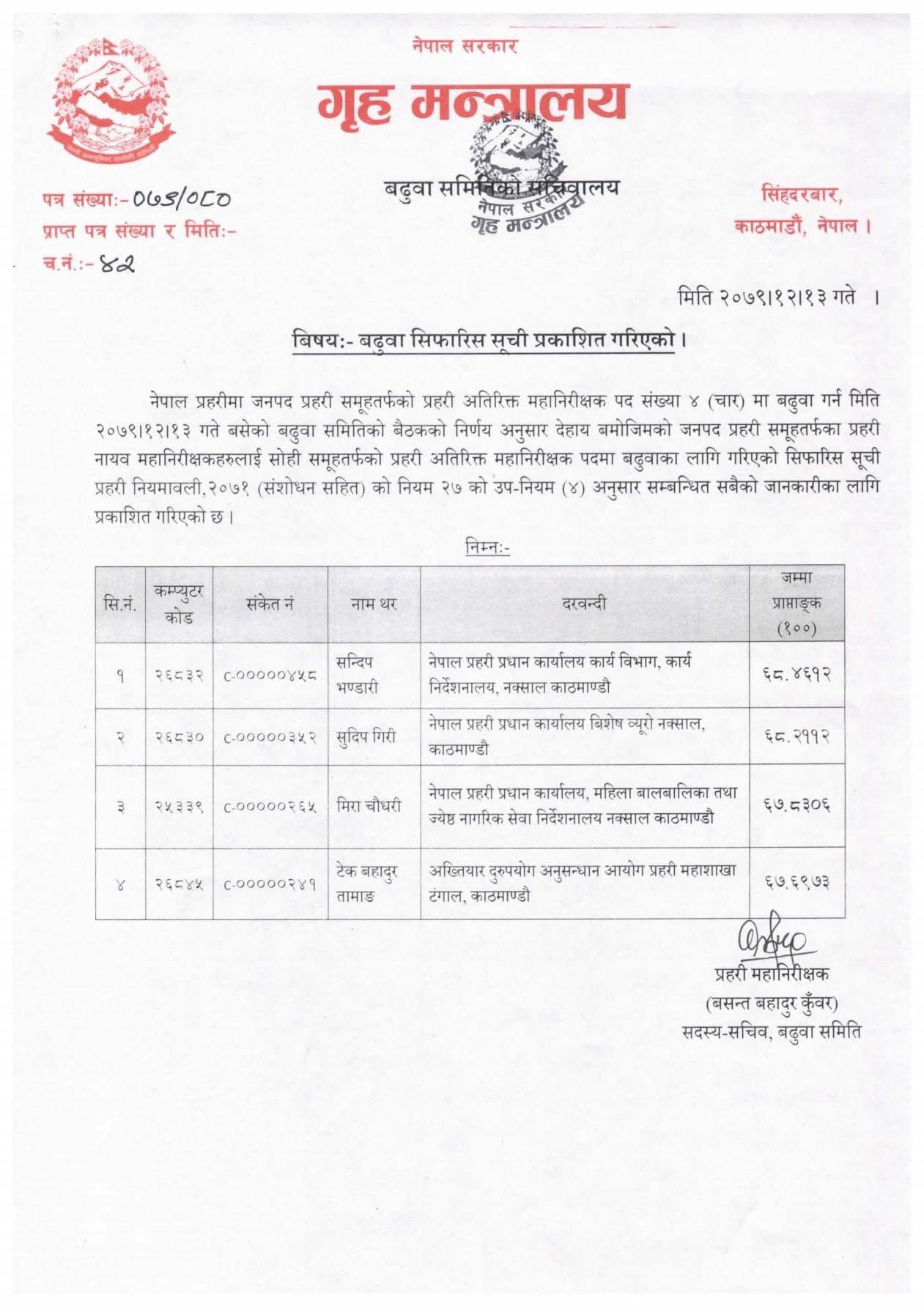 नेपाल प्रहरीमा चार डिआइजी एआइजी बढुवामा सिफारिस