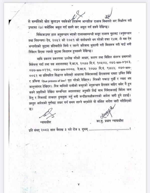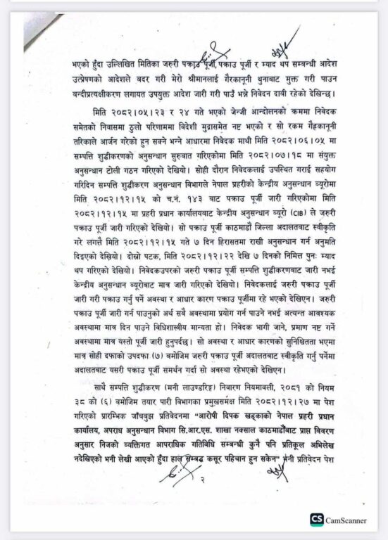 सम्पत्ति शुद्धीकरण कसूरको अनुसन्धानका लागि थुनामा रहेका खड्कालाई बन्दीप्रत्यक्षीकरणको निवेदनमार्फत छाड्न सर्वोच्चले आदेश दिएको हो ।