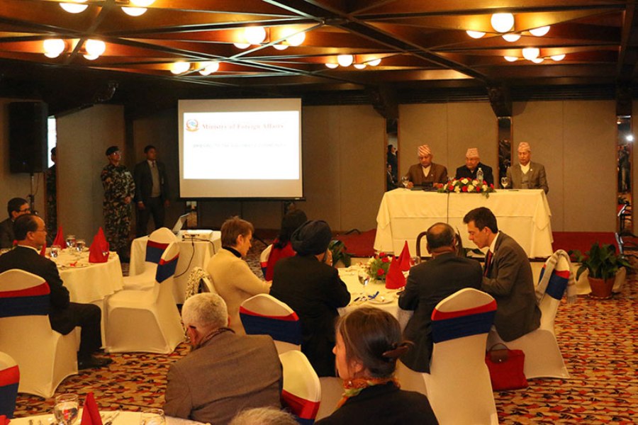 मन्त्रालयले आयोजना गरेको कार्यक्रममा परराष्ट्रमन्त्री प्रदीपकुमार ज्ञवालीले नेपालस्थित विदेशी कूटनीतिक नियोगका प्रमुख एवं प्रतिनिधिलाई नेपालको परराष्ट्र नीति, परराष्ट्र नीतिले बाह्य मुलुकलाई पार्ने प्रभाव र नेपालमा हुने लगानी सम्मेलनबारे जानकारी गराएको प्रधानमन्त्री केपी शर्मा ओलीका परराष्ट्र मामिला सल्लाहकार डा. राजन भट्टराईले जानकारी दिए ।