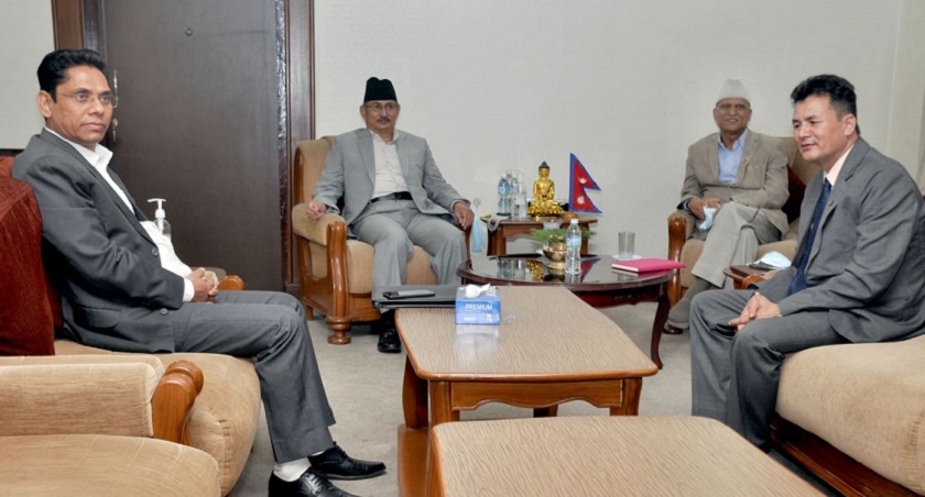 काठमाण्डु – नेपाल सरकार र नेत्रविक्रम चन्द विप्लव नेतृत्वको नेकपाबीच छलफल भएको छ । आइतबार गृह मन्त्री बालकृष्ण खाँण, कानुन न्याय तथा संसदीय मामिलामन्त्री दिलेन्द्रप्रसाद बडू, महान्यायाधिवक्ता खम्मबहादुर खाती र विप्लव नेकपाको तर्फबाट पार्टी प्रवक्ता खड्गबहादुर विश्वकर्मा ‘प्रकाण्ड’बीच छलफल भएको हो ।