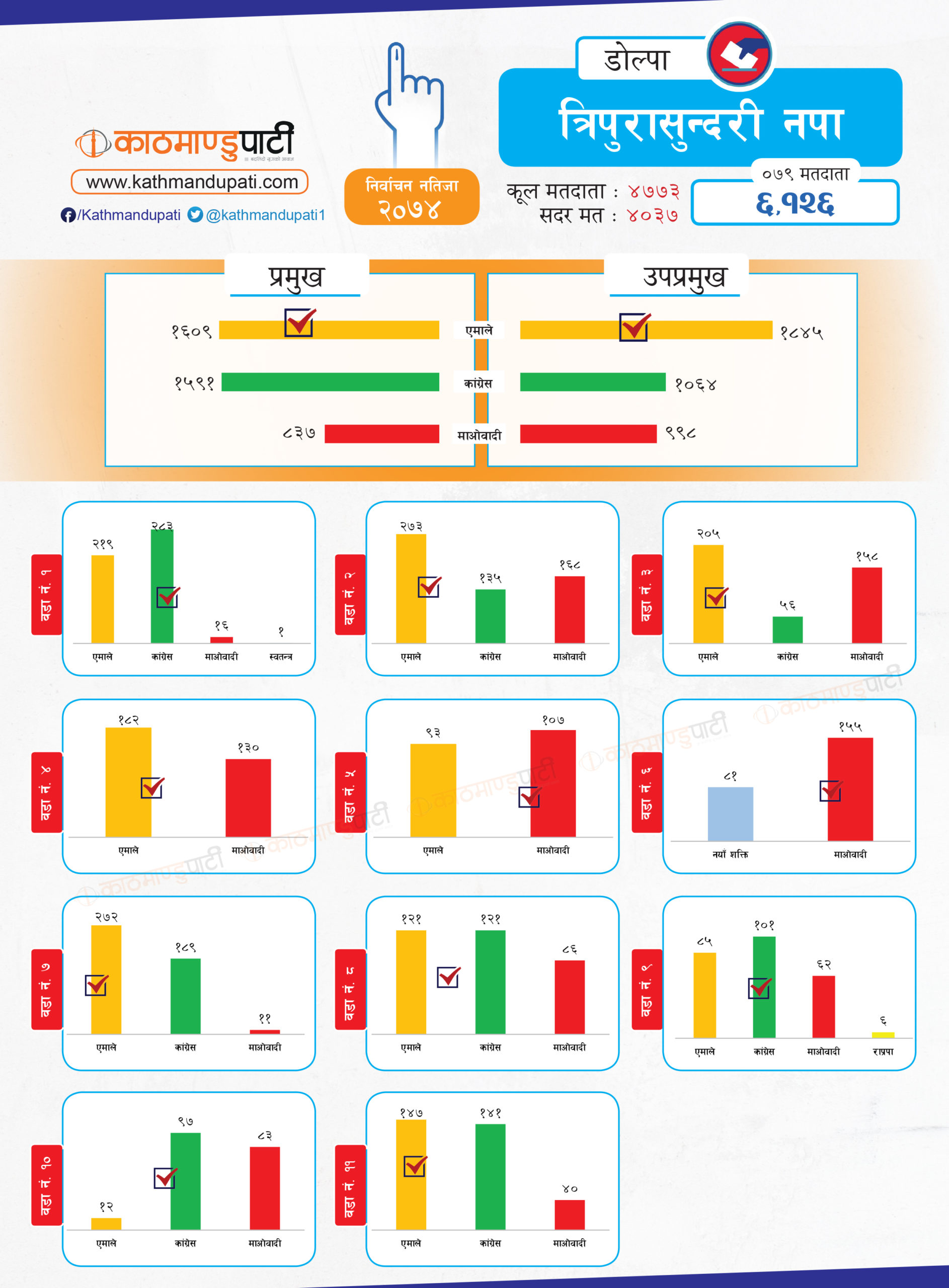 विगतमा जस्तै यसपटक पनि एमाले र राप्रपाबीच तालमेल भए कांग्रेस वा गठबन्धनलाई चुनौती देखिन्छ । यसबाहेक एमालेले त्रिपुरासुन्दरी नगरपालिकामा प्रमुख र उपप्रमुख दुवै जितेको थियो । यसपटक कांग्रेस, माओवादी, एकीकृत समाजवादीसहितका दलबीच तालमेल प्रभावकारी भए एमालेका लागि चुनौती बन्ने देखिन्छ ।