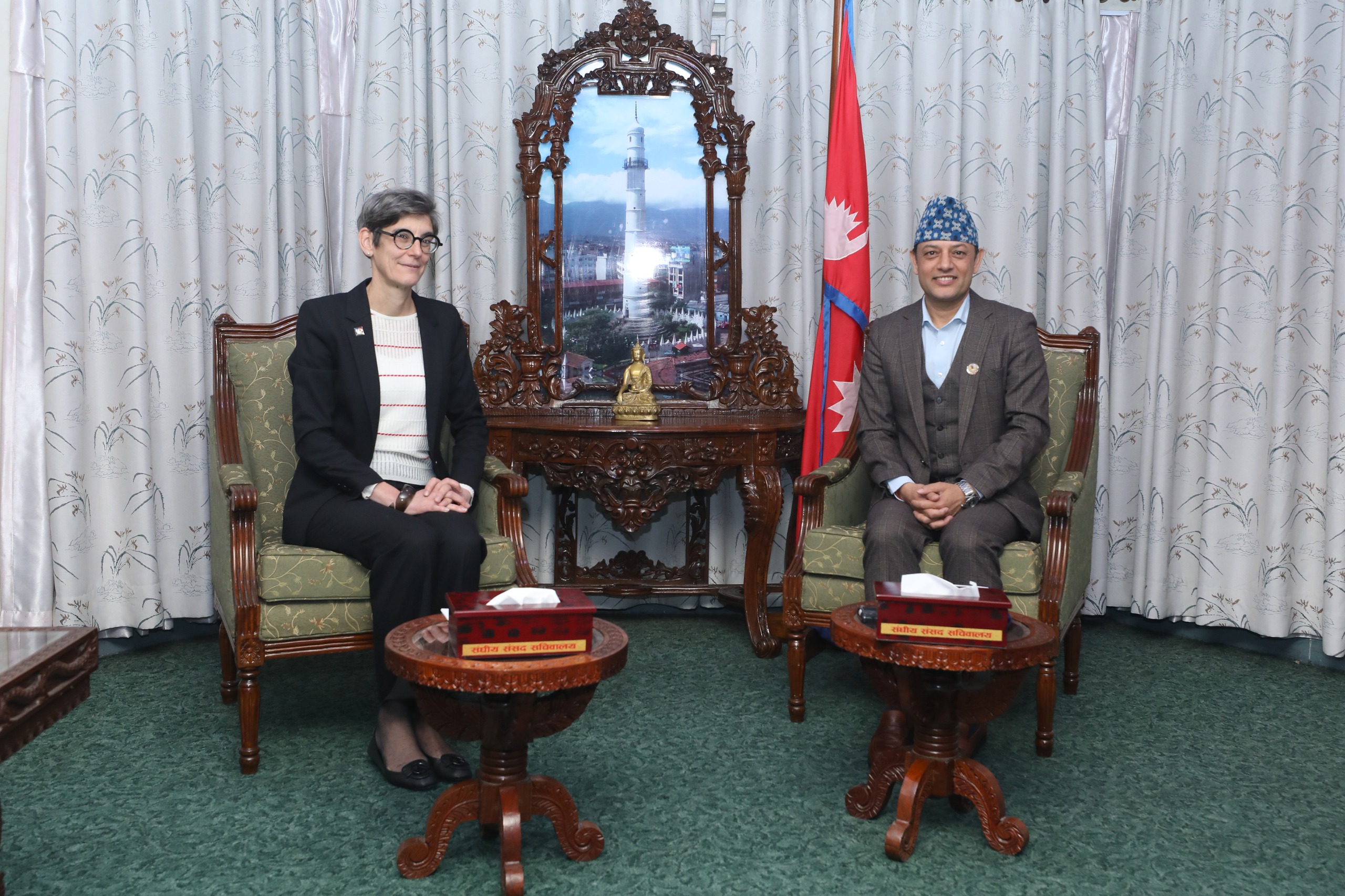 काठमाण्डु – सभामुख डोलप्रसाद अर्यालसँग नेपालका लागि स्विट्जरल्याण्डकी राजदूत महामहिम डा. डानियल मेउल्लीले शिष्टाचार भेटवार्ता गरेकी छन् ।