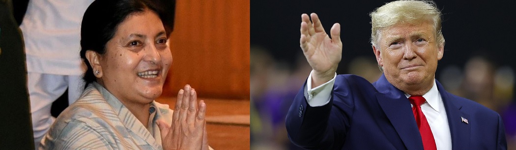 ट्रम्पले एक सन्देश पठाउँदै राष्ट्रपति भण्डारीलाई संविधान दिवसको शुभकामना दिएको परराष्ट्र मन्त्रालयले जनाएको छ । उनले नेपाली जनता र राष्ट्रपति भण्डारीलाई संविधान दिवसको शुभकामना दिएका हुन् ।
