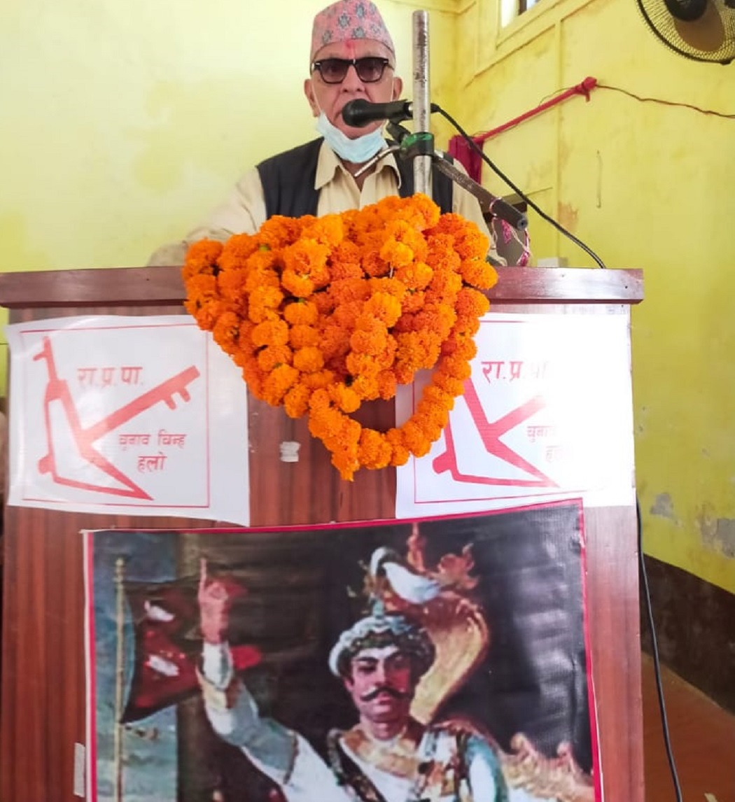 ‘राष्ट्र बनाउने महा अभियानमा हामी लाग्नु परेको छ । भ्रष्ट र प्रजातन्त्रको नाममा निस्किएका वर्तमान सरकार र कम्युनिस्टविरुद्ध लड्न राप्रपाले सामर्थ्य राख्न सक्छ’, उनले भने, ‘राप्रपा राजसंस्था र हिन्दुराष्ट्र चाहाने पार्टी हो। हामी हाम्रो अधिवेशन पश्चात् आधिवेहरि र ज्वारभाटा उठ्ने खालको आन्दोलन हुन्छ । तपाईहरु तयारी अवस्थामा रहनूस् ।’