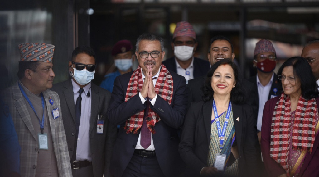 काठमाण्डु- डब्लुएचओका महानिर्देशक डा. टेड्रोस अधानोम गेब्रेयसस तीन दिने नेपाल भ्रमणको सिलसिलामा बिहीबार काठमाण्डु आइपुगेका छन् । उनी भारत हुँदै नेपाल आएका हुन् । स्वास्थ्य तथा जनसंख्यामन्त्री विरोध खतिवडाको निमन्त्रणमा उनी नेपाल आएका हुन् ।
