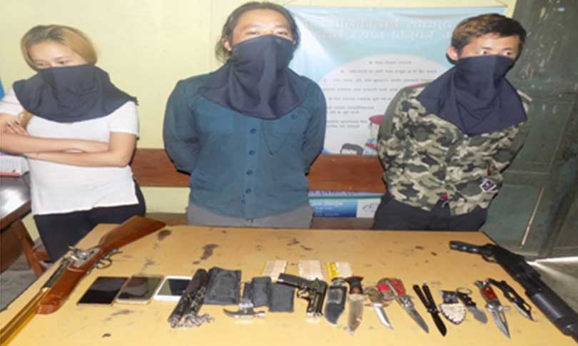 काठमाडौं – नक्कली हतियार र लागूऔषध कारोबारीको एउटा समूहलाई प्रहरीले काठमाडौंबाट पक्राउ गरेको छ । पक्राउ पर्नेमा धरान घर भई समाखुशी बस्ने २३ वर्षीय डेनिस राई, २७ वर्षीया प्रज्ञा राई र वनस्थलीका ३० वर्षीय सुभाष गुरुङ छन् ।