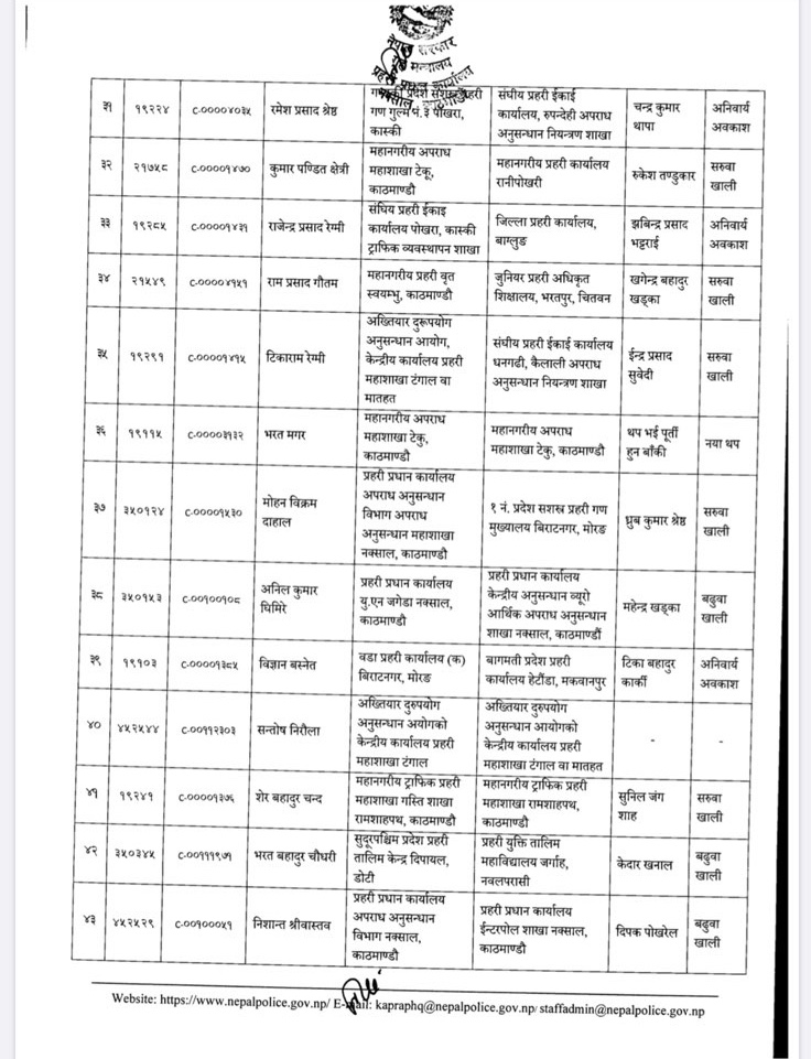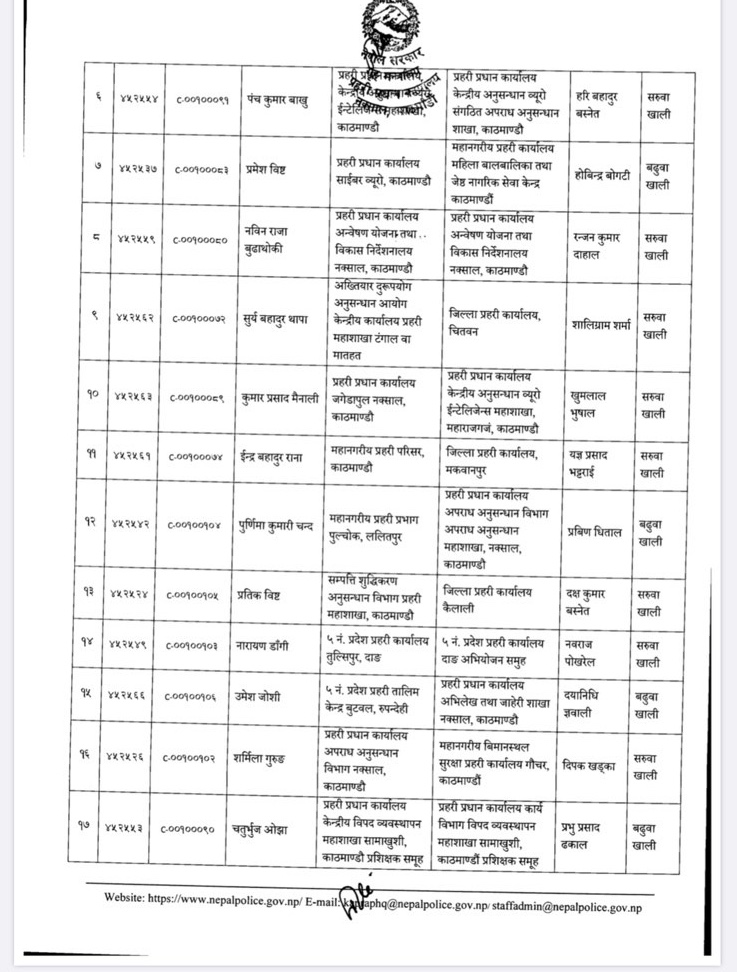 प्रहरी प्रधान कार्यालयले पदस्थापन भएका प्रनाउहरुको लिस्ट सार्वजनिक गरेको छ ।